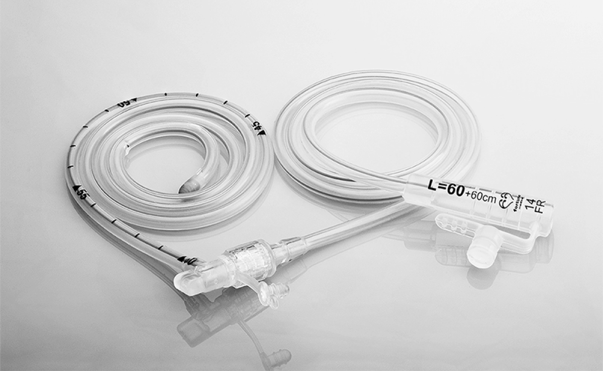 這款外接兩截式鼻胃(NG)管採用分離的兩截結構,允許患者在進食後拆卸延伸管,避免意外拔除。該產品可放置於氧氣罩內,較不妨礙一般的醫療處置,例如復健治療、氣管插管或中央靜脈插管。