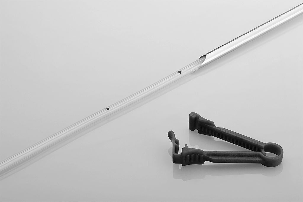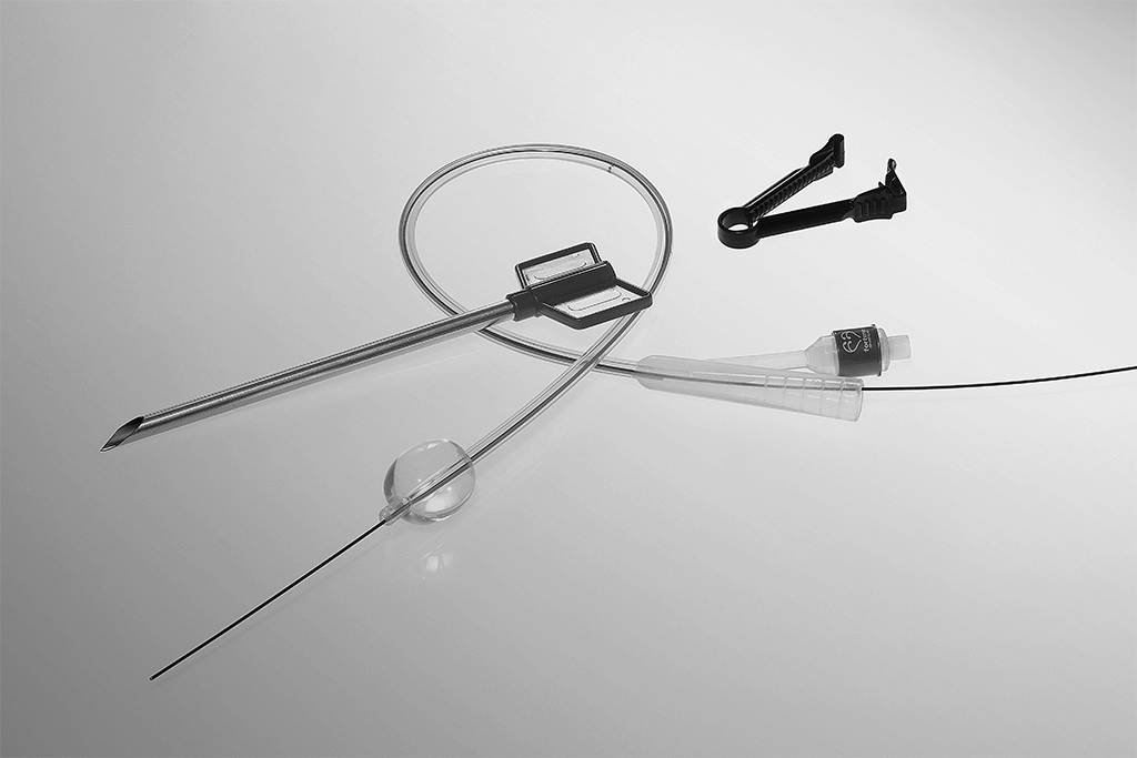 中空探針藉由穿刺,可協助導尿管立即插入膀胱。輕折探針兩翼即可輕鬆移除。